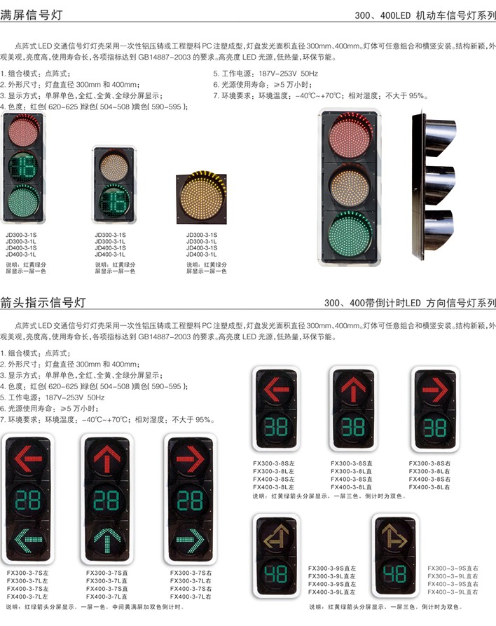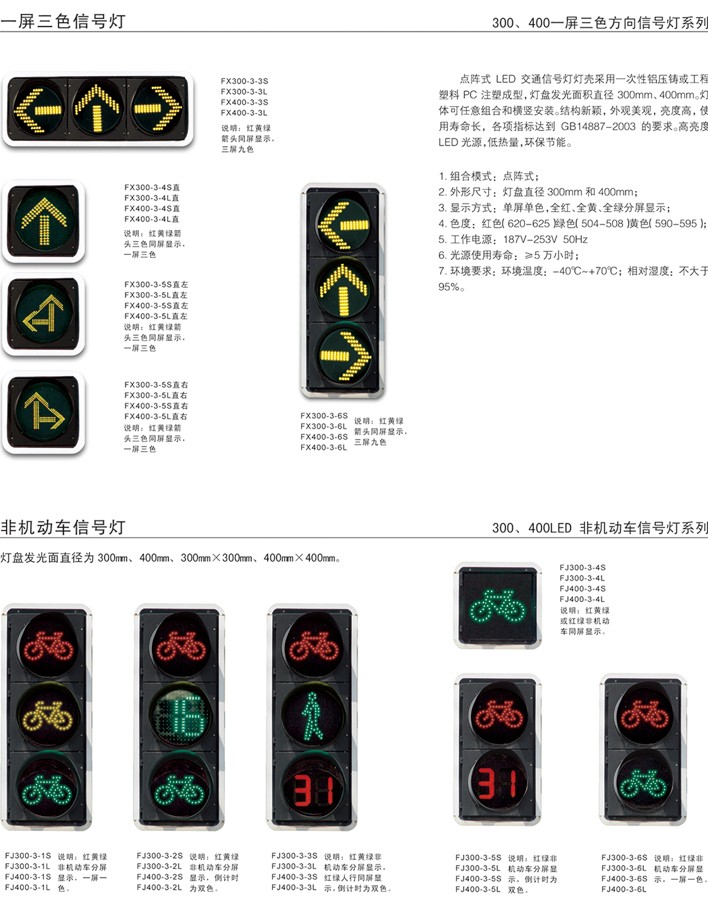 交通信號燈光源采用進(jìn)口超高亮度LED,具有亮度柔和均勻.無光暈色斑、無顆粒感.無光污染、低功率、大視角、采用恒流源,亮度穩(wěn)定無閃爍。燈殼采用一次性鋁壓鑄或I程塑料( PC )注塑成型,燈盤發(fā)光面直徑為200mm300mm.400mm。燈體可任意組合和橫豎安裝。