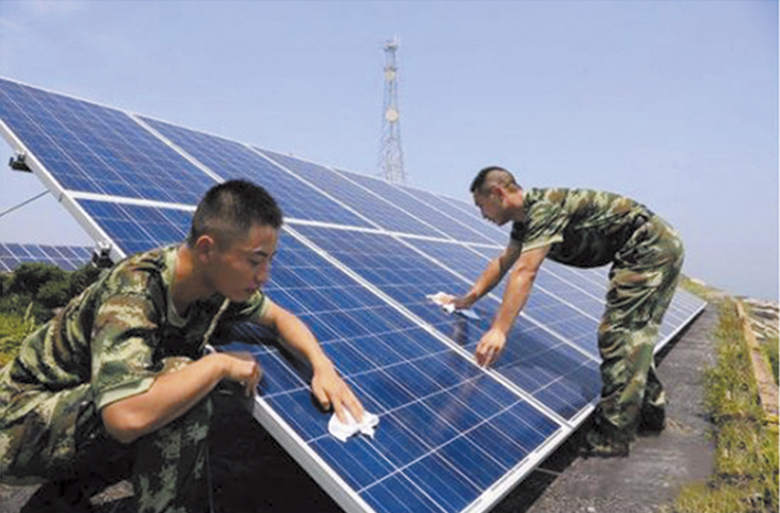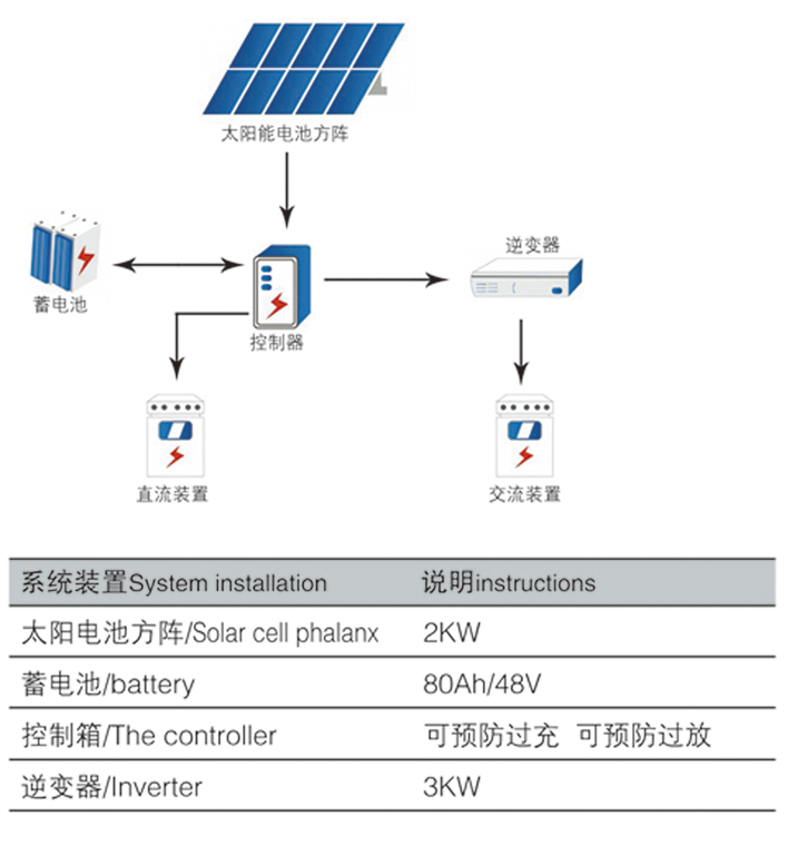 白天通過太陽電池方陣發(fā)的電儲(chǔ)存在蓄電池電池中,滿足軍隊(duì)營(yíng)區(qū)生活照明和辦公設(shè)施使用?!?